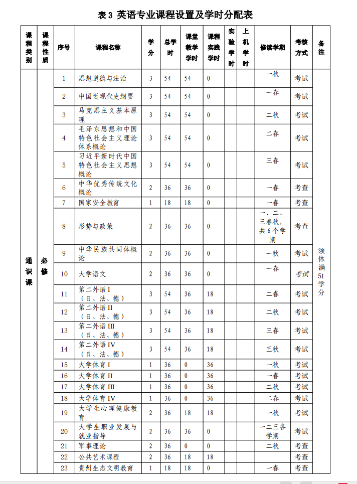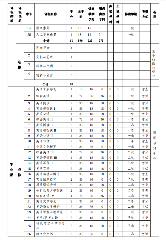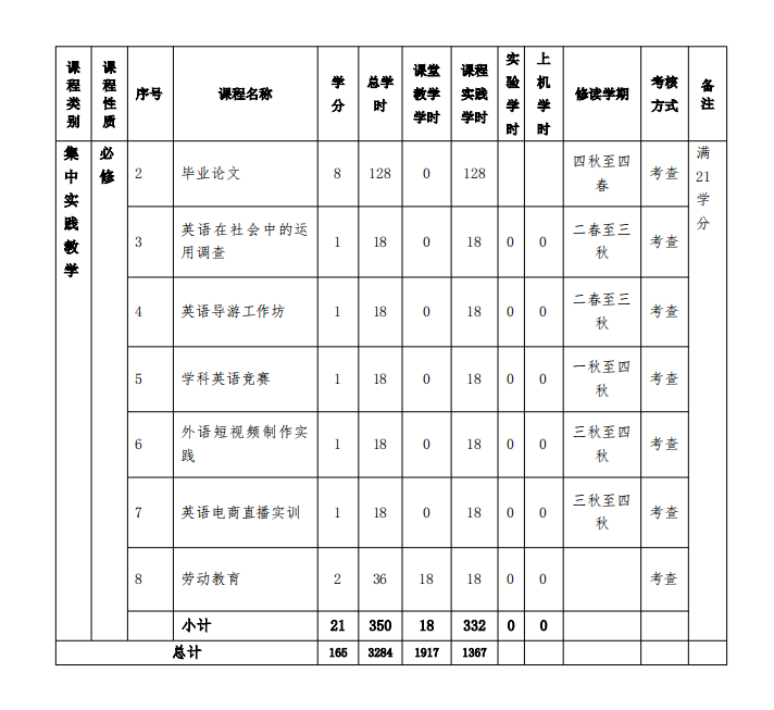 2025版英语专业课程设置
