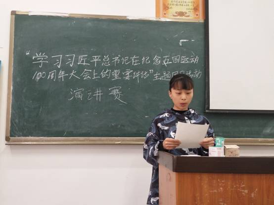 比赛结束后,校团委副书记胡斌对大家的演讲做出了点评,他说,同学们都紧扣主题,深刻领会学习了习近平总书记在纪念五四运动100周年大会上的重要讲话精神,并且以无奋斗不青春、无学习不青春、无勇气不青春为主题,激励了本次比赛的选手和在场的同学们。