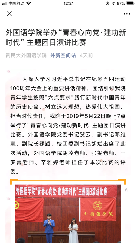 于2019年5月22日晚上7点举行了“青春心向党•建功新时代”主题团日演讲比赛。老司机