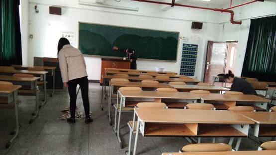 2019年3月2日11:45分,12名积极向上,热心奉献的志愿者在15栋教学楼下集合,副会长吴桃燕将参与活动的志愿者平均分为两组。第一组在会长任云芳的带领下打扫15栋教学楼3楼教室,第二组则同副会长一起打扫15栋教学楼4楼教室。分工明确后,12点整开始进行教室卫生大扫除。每个志愿者都积极清理垃圾,不怕脏,不喊累,积极配合。走道上、课桌里均已不见塑料袋、瓜皮纸屑的踪影;黑板上被写过的粉笔痕迹和讲桌上的粉笔灰被擦拭得一尘不染,教室垃圾桶里满满的垃圾也被清理得干干净净。下午16:00,此次活动圆满结束,志愿者们在15栋教学楼下拍照留念,记下这自豪、光荣的时刻。
