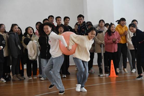 的党委书记贺云和院长肖唐金分别为大家致辞,激励同学们要发扬民大学生的运动精神,更是鼓励大家要积极参与,并表示希望通过这一次的运动会,能更好地促进同学们之间的友谊。本次趣味运动会共有八个项目,分别是双人夹球接力跑、定点投篮、三人四足、电臀达人等。每一个项目都是趣味十足,同学们参与的积极性也很高,在活动的三小时里,整个体育馆都洋溢着同学们的加油呐喊声和欢笑声。