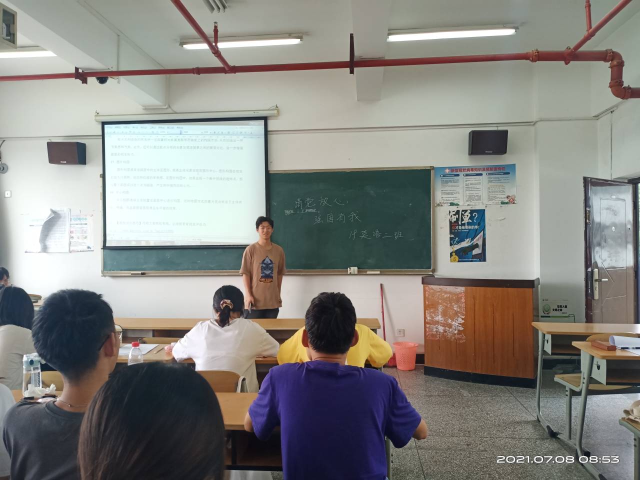 本次活动通过观看视频,原文阅读讲话内容等方式学习了习近平总书记在庆祝中国共产党成立一百周年大会上的重要讲话精神。习近平总书记重要讲话,站在政治和战略高度,统揽全局、纵贯百年、远眺未来,深刻阐发了一系列重要思想、重要论断、重要要求,彰显了中国共产党的政治品格、精神谱系、光荣传统、红色血脉,展现了中国共产党的政治担当、历史自觉、人民立场、复兴使命,是指引全党全国人民立足百年大党的新起点。另一方面,各班在观看中国共产党成立一百周年大会共青团员和少先队员代表集体致献词相关视频的基础上,部分团支部还通过朗诵等形式再现了共青团员和少先队员代表集体致献词,共同许下“请党放心,强国有我”青春誓言的场景。