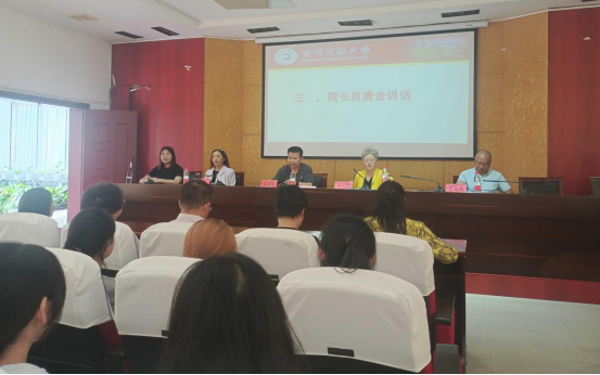 2023级新生开学典礼于9月4日早上在花溪校区行政楼第五会议室隆重举行。学院党委书记卢文芸,院长肖唐金,正处级组织员韦光明,副院长禄颖共同出席此次开学典礼。学院专兼职行政,各系部主任,2023级全体新生参加。