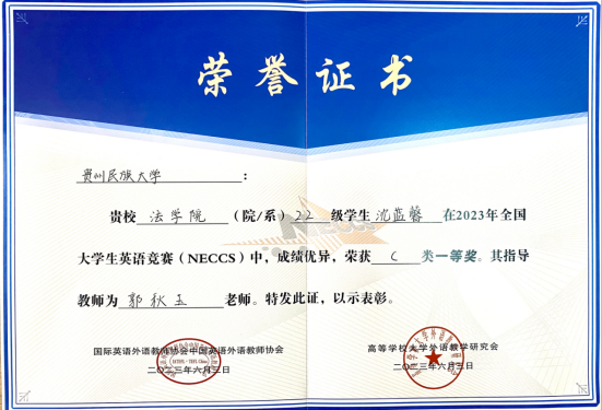 在“2023年全国大学生英语竞赛(NECCS)”中喜获佳绩!