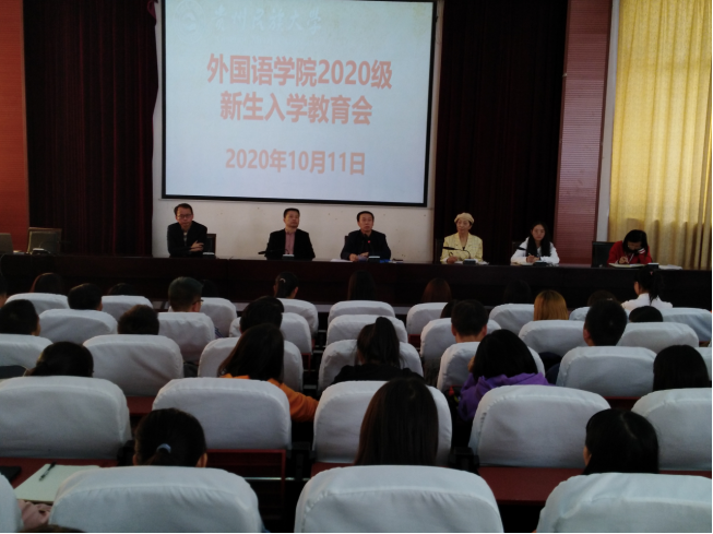 概况,并从如何学好外语、外语作为一门语言工具的意义等方面进行了分析;禄颖副院长从大学外语教育、专业竞赛、招生等方面进行详细介绍;张广勇副院长从学科建设、专业学习、人生规划等方面为同学们答疑解惑。会后,2020级班主任韩玉老师召开年级班会,详细安排相关班级工作,新生入学教育会圆满结束。