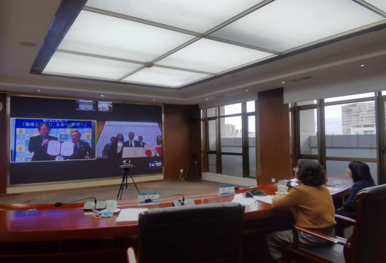 与日本佐贺县西九州大学以视频连线方式举办学术交流协议书签署仪式。