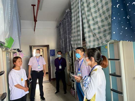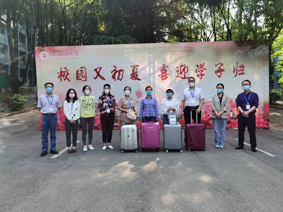 领导高度重视,成立专门工作组,制定工作方案,在刘兴明副书记、禄颖副院长、张广勇副院长的带队下,与韩玉老师、辛雅婷老师、王梦菁老师、刘俊老师一同到学校办公楼门口“一对一”接待,关心、慰问返校学生,帮助学生搬运行李,深入宿舍与各专业毕业生亲切交谈,进行学校疫情防控的再宣传和再教育。刘兴明书记、禄颖副院长、张广勇副院长还对学生假期疫情的自我防控和学习工作安排特别是线上教学等情况进行深入了解,并嘱咐学生严格遵守学校关于疫情防控的规章制度,做好个人防护,不离校、不聚集、不串门,切实提高自身保护意识。