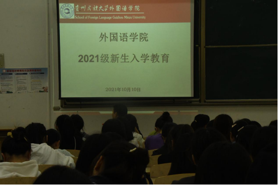 于2021年10月10日在花溪校区15号教学楼101教室举行2021级新生入学教育大会。主持党委工作的刘兴明副书记、院长肖唐金教授出席。2021级全体新生(含专升本学生)参加,会议由班主任翟利沙主持。