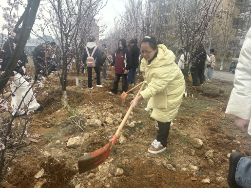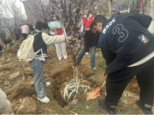 活动伊始,志愿者为同学们详细讲解了植树要领和注意事项,并进行了示范操作。随后,同学们热情高涨,挥锹铲土、扶苗填坑、培土浇水,分工协作,默契配合,现场一派热火朝天的景象。经过一番辛勤劳动,一棵棵新栽种的树苗迎风挺立,为初春的大地增添了勃勃生机。