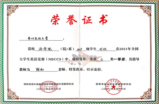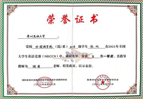 在“2021年全国大学生英语竞赛(NECCS)”中喜获佳绩!