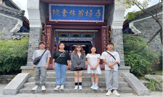 大学生创新创业训练团队在青岩古镇菊林书院展开调研工作。团队项目——《贵州省中国传统文化推广模式调研》于今年七月底正式获批省级立项,队长是2020级商务英语专业张均千,队员为同班王新愈、欧阳曦、罗国婕、李霜雪,分别负责团队资料搜集、文档整理、摄影等工作。