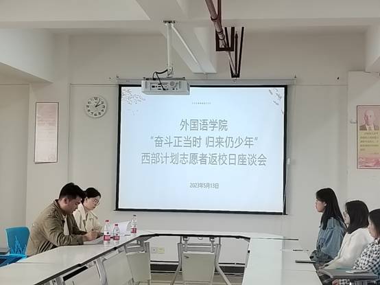 5月13日下午两点,在15栋教学楼1209会议室举行了以“奋斗正当时,归来仍是少年”为题的西部计划志愿者返校日座谈会。座谈会由老司机
