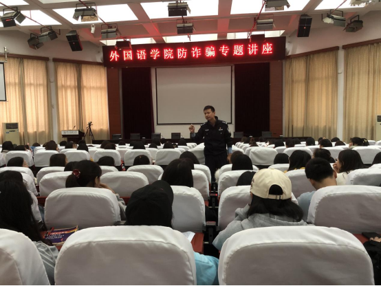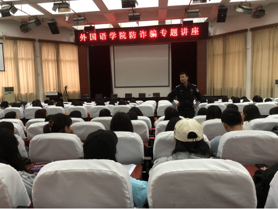 学生受骗的典型案例,列举了短信诈骗、电话诈骗、网络诈骗等诈骗类型,讲述了刷单诈骗、冒充客服及公检法诈骗、贷款诈骗等多种诈骗形式,形象生动地阐述了诈骗形成的根由及其对自身、社会造成的巨大危害和恶劣的影响,要求广大学生提高防范意识,告知同学们如遇电信或者网络诈骗要采取不理会或者举报的方式,切莫因贪小便宜的心理而遭受损失。并希望听讲座的师生将讲座内容传达给自己所在班级、周围同学及家人朋友,做好宣传工作,提高防范意识和能力。
