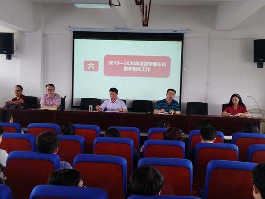 第三,张广勇副院长从2019—2020学年度夏学期工作开展特别是专业教学和公共外语的排课、老师的科研等进行了总结,希望各位老师要有担当和奉献精神,积极承担学校和学校安排的教学工作量,不断提升自身教学能力和科研水平。