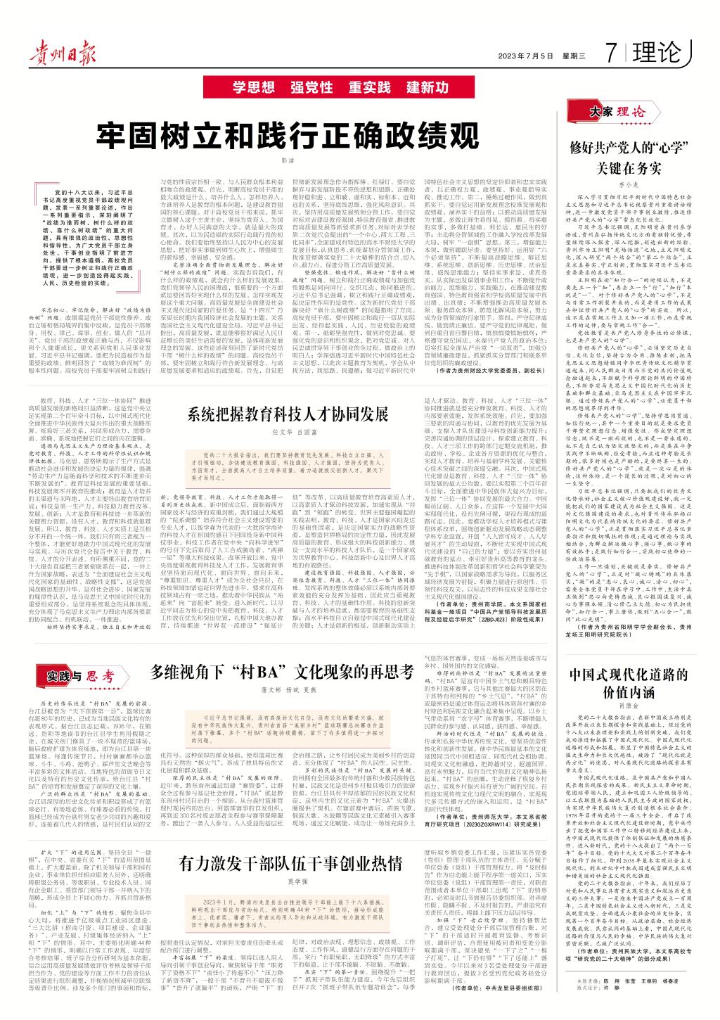 老司机 院长肖唐金在贵州日报理论版发表文章:中国式现代化道路的价值内涵