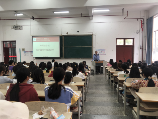 在花溪校区十五号教学楼101教室举行防诈骗安全知识讲座。老司机