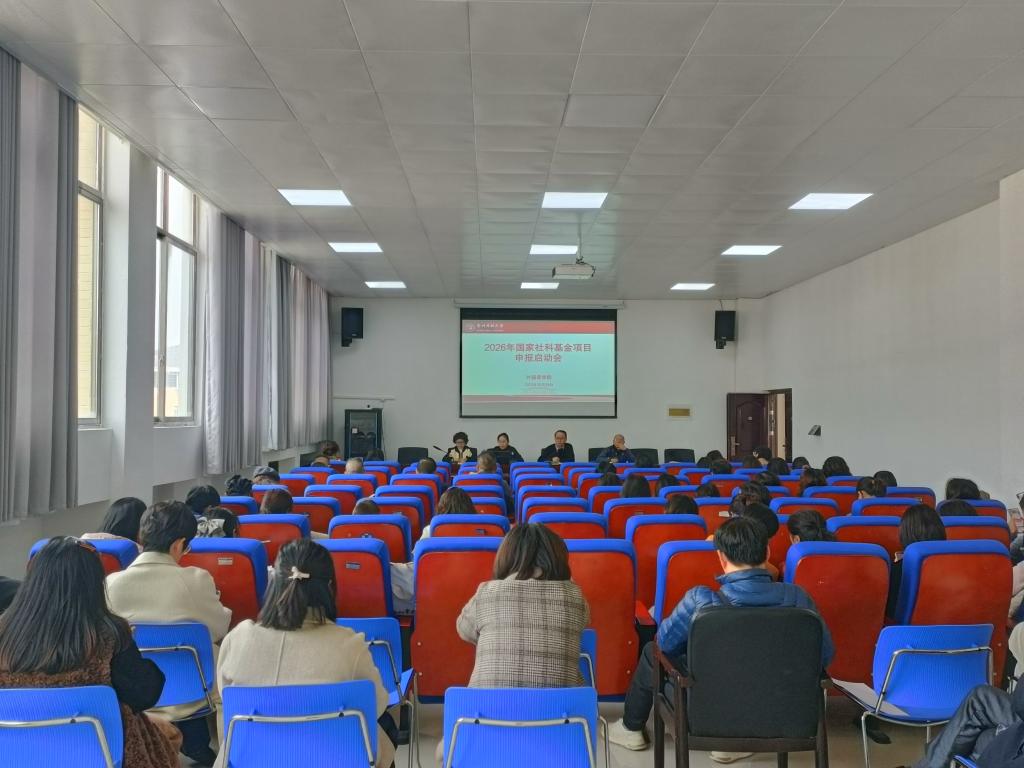 在416会议室召开2026年国家社科基金项目申报启动会,学院全体教师参加。会上,学院院长张广勇传达了近期学校召开的国家级项目申报和科研平台、科研团队高质量发展专项调度会的会议精神,汇报了2025年学校及国家级科研项目立项的整体情况,深入分析了学院在国家级科研项目申报和立项方面面临的问题和存在的机遇。