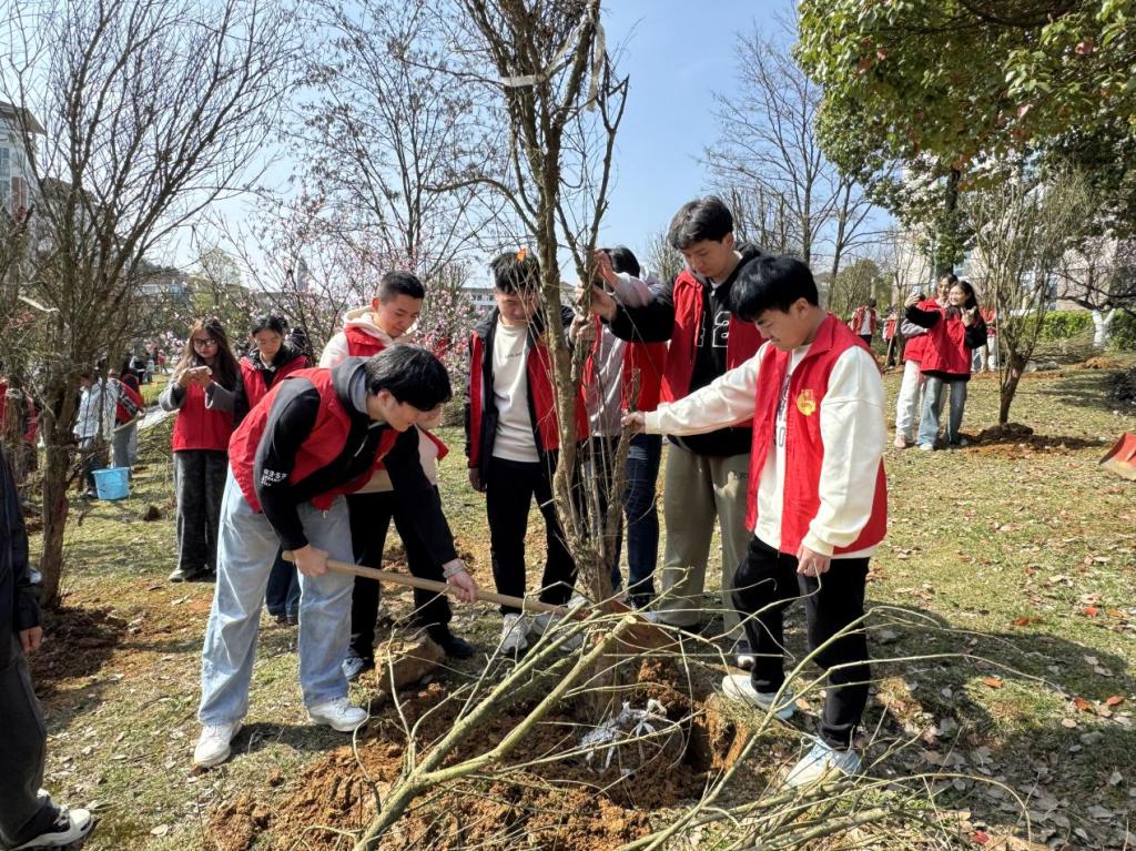 团委组织20余名青年志愿者,参与校团委开展的共建“共青林”义务植树活动。学子们亲手栽种石榴树苗,以实际行动践行绿色发展理念,为校园添新绿、为“贵山石榴红”注入青春力量。